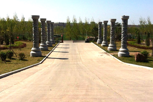 園區(qū)依山傍水,青山碧水掩映其中。石雕與槐樹根的相互輝映,傳統(tǒng)的古典建筑和現(xiàn)代化互相交替,優(yōu)雅的庭院景色配以開闊的綠樹草坪,加上秀美的園林格局以及風(fēng)格迥異的藝術(shù)浮雕,使整個陵園氣勢恢宏、風(fēng)范典雅、靈氣聚現(xiàn)。園門處聳立著八根巨型龍柱,兩只威武的漢白玉獅王鎮(zhèn)守左右;宏偉的牌樓前四只石獅臥守陵園。園內(nèi)綠樹成蔭,假山噴泉點綴其中,二十四孝長幅石雕橫跨園中,六萬多平方米的綠化、草坪、廣場(其中有一萬多平方米的大型停車場)及兩座大型放生池。毛主席時期修建的東風(fēng)渠橫跨本陵園,渠里流淌著來自******景點廣勝寺的泉水,滿目的紅花綠草、亭臺樓閣、小橋流水,自然美景映襯著人文景觀。